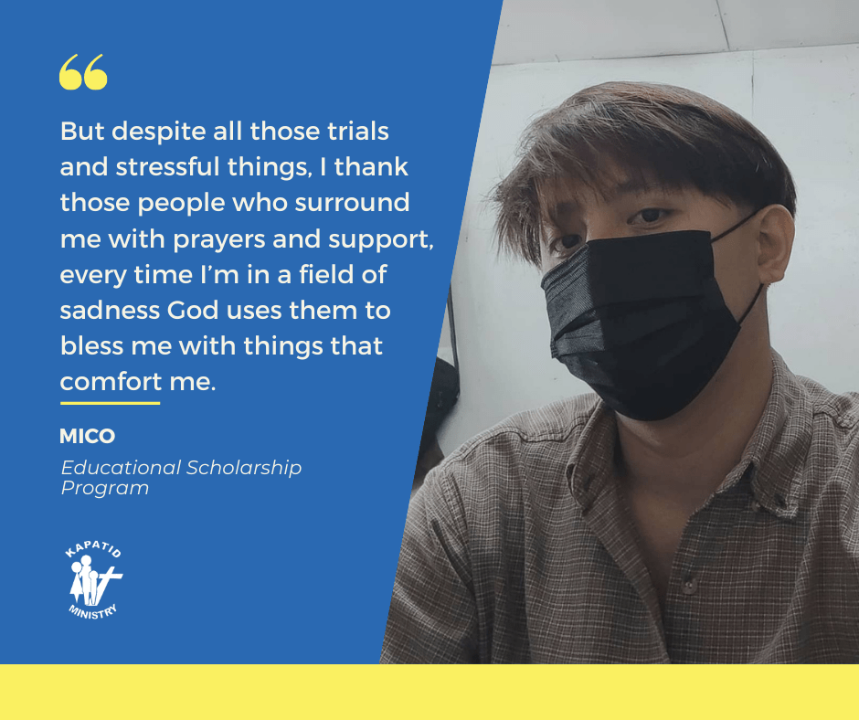 I am so blessed to have an opportunity to introduce myself and give thanks to you. I’m Mico Veranga, 20 years old currently taking a Bachelor of Science in Industrial Engineering. My first choice is to take an exam at Philippine Military Academy but suddenly during that time COVID cases are enormous, so I have to choose my second option that’s why I took this course because it is the only engineering course available when I enrolled in Quezon City University.