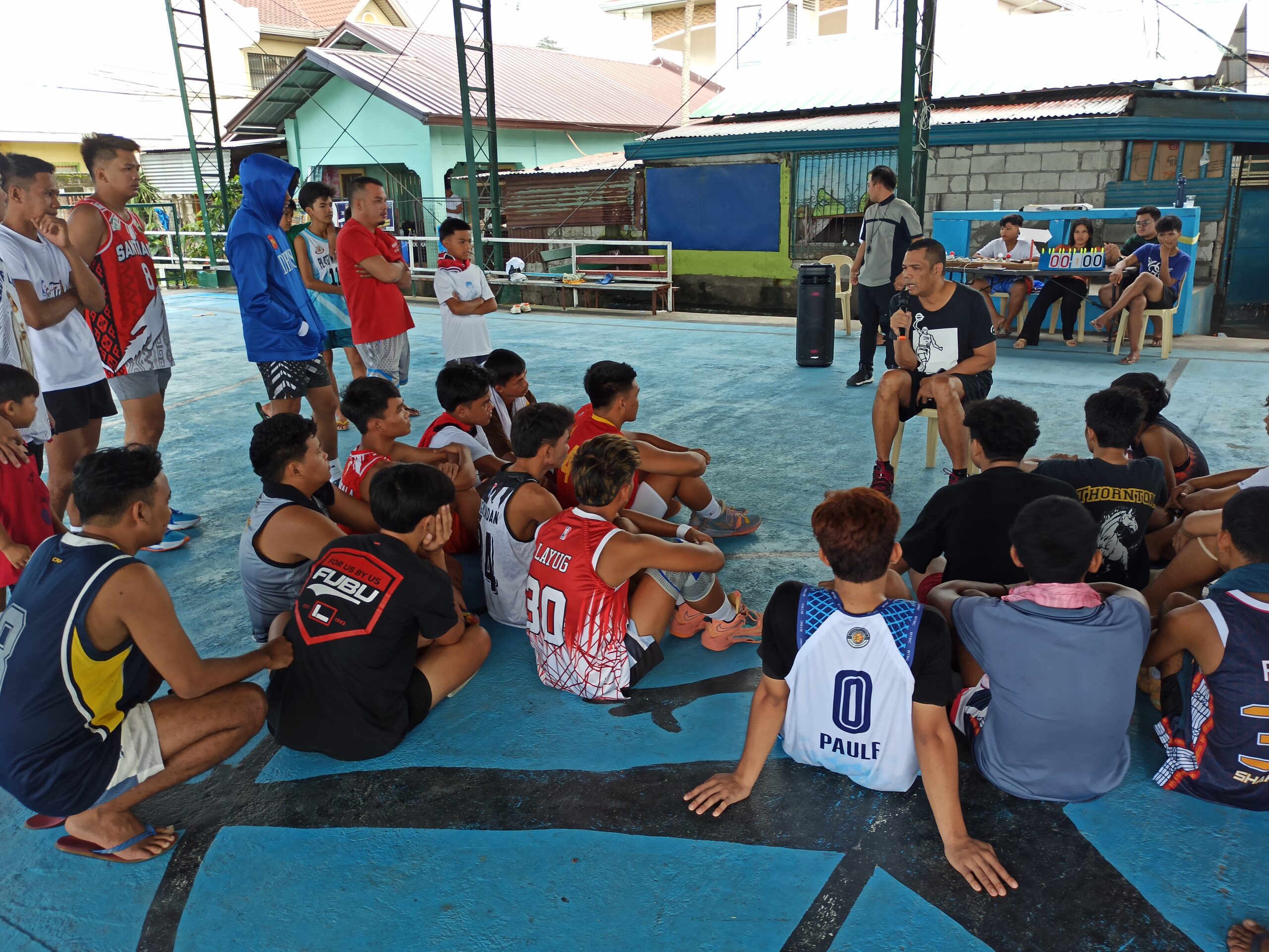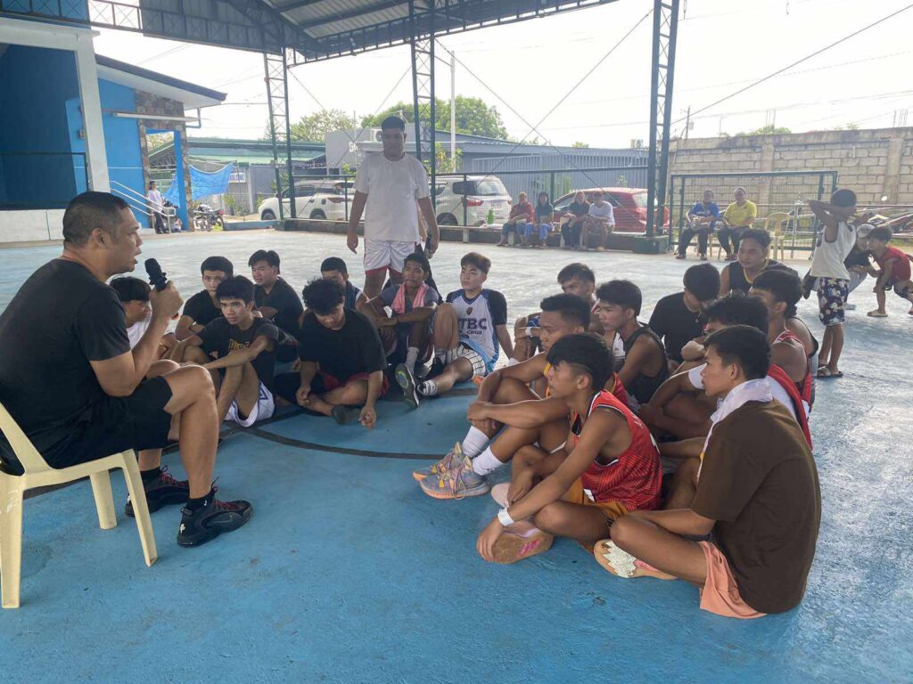 Bro. Peter sharing his testimony to the youth in the Bible Basketball program.